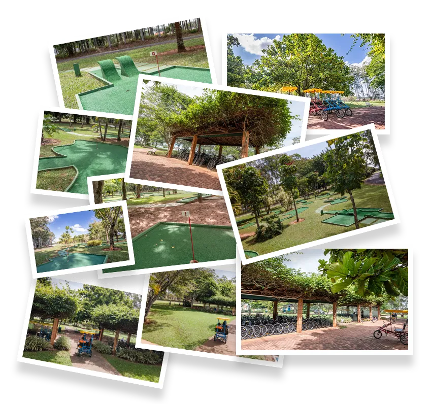 Lazer para toda a família! com bicicletas adulto, infantil e triciclo família, para você e sua família passearem pela ecopista e se conectarem ainda mais com a natureza. E mais: divirta-se também com os pequenos em uma partida de Minigolfe.