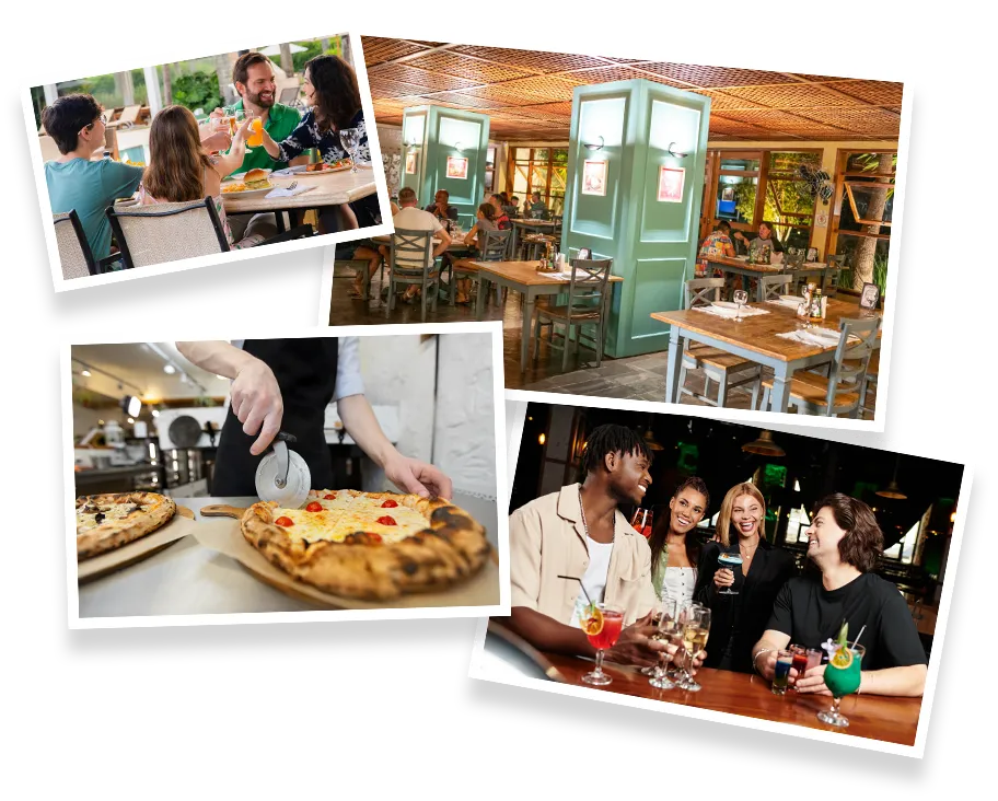 Restaurantes, pizzaria, lanchonetes, doces e café, hamburgueria e bares, com cardápio variado assinado pelo Chef Iran Rodrigues para atender toda a família, em espaços aconchegantes, com vistas privilegiadas e refeições elaboradas com muito capricho.